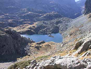 La descente se fait du côté du lac du Merlat (2044m) par un chemin très raide, dans des éboulis. Ensuite on contourne ce joli petit lac par la droite et on remonte sous le Galeteau, jusqu’au refuge de la Pra. De là remontée jusqu’au col de la Pra à 2186m. Il ne reste plus qu’à descendre jusqu’au lac du Crozet, magnifique sous le soleil et au parking du Pré Raymond (1372m) . De là au parking des 4 chemins, il y a à peine 10 minutes ! Très jolie balade pour les paysages, sans aucune difficulté…. |